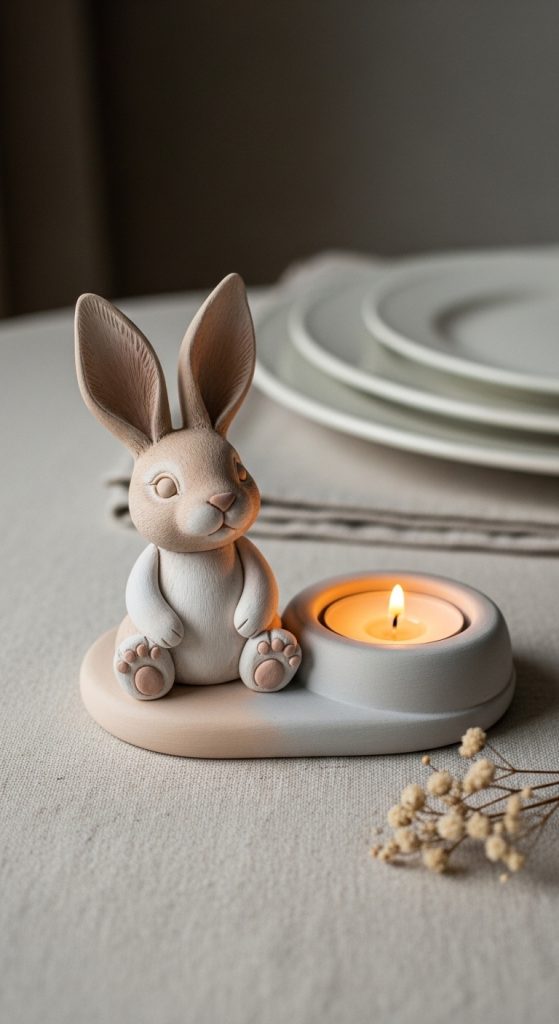 This bunny candle holder can add a cozy decorative touch to tables or shelves.