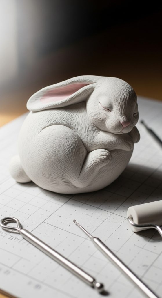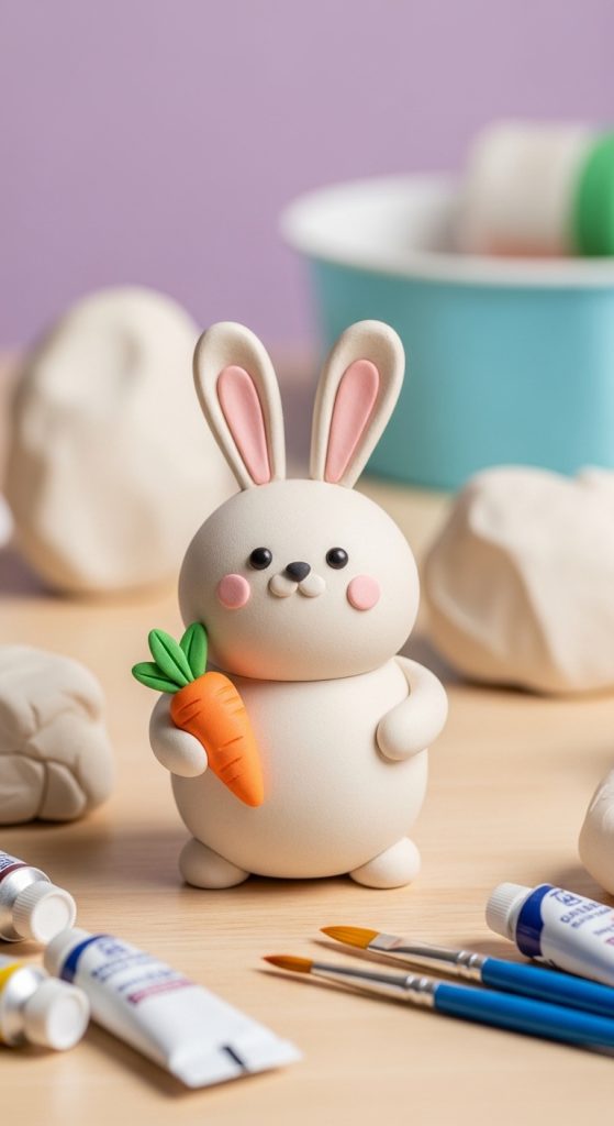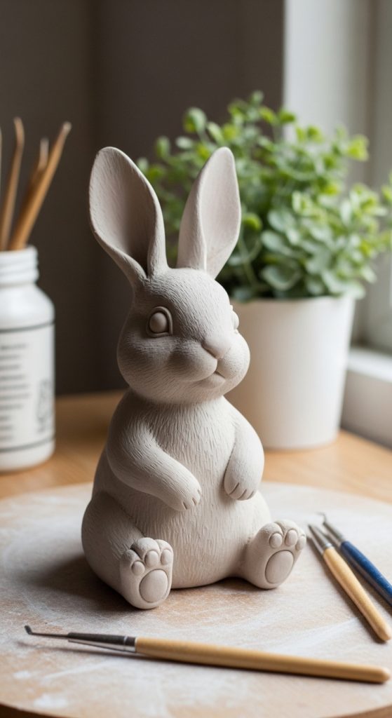The classic sitting bunny is one of the easiest and most popular air dry clay projects. It is a great starting point for beginners because it uses simple shapes and basic sculpting techniques.