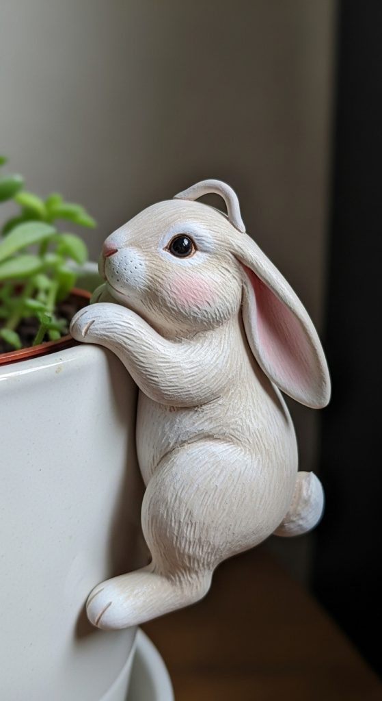 A bunny plant pot decoration adds a charming handmade touch to indoor plants and garden pots.