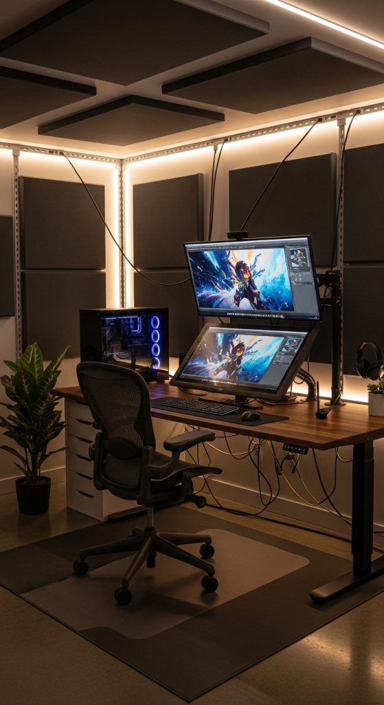 If you plan to shoot videos, sound control becomes important. Acoustic foam panels can reduce echo and improve audio quality.