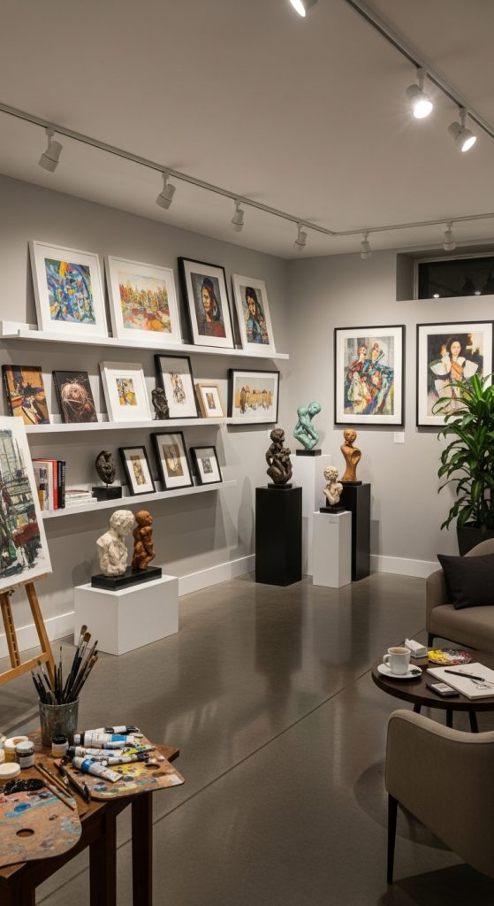 This type of studio is useful for artists who host small exhibitions, invite clients to view artwork, or simply want to admire their completed projects.
