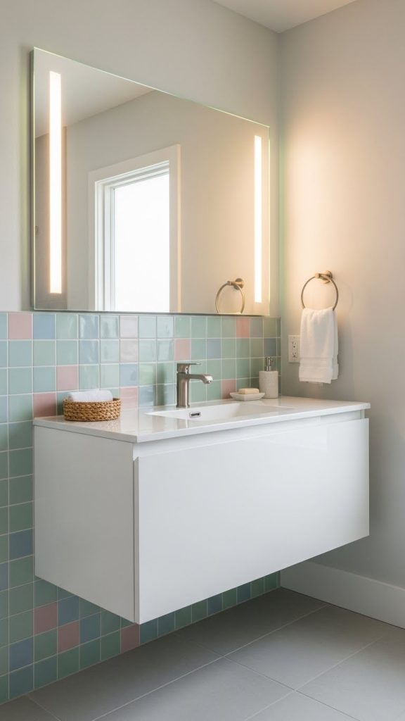 This type of backsplash allows for creativity. It works well behind vanities or as an accent wall. Mosaic backsplashes can suit both modern and traditional designs, depending on color and material choices.