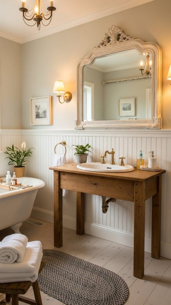 Beadboard backsplashes add a soft and charming look to bathrooms. This style works well in cottage, farmhouse, or traditional designs. Beadboard panels create vertical lines that make walls appear taller.