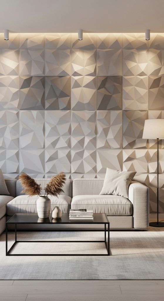 Textured wall panels provide depth and dimension to a blank wall, creating a sophisticated and modern look. These panels can be made from wood, MDF, or PVC, and come in various patterns such as geometric, floral, or 3D designs. Preparation involves measuring the wall and selecting panels that fit the style of your living room. Materials needed include the panels, adhesive or nails, a level, and a saw for cutting to size. Installation requires careful alignment and consistent spacing to achieve a seamless appearance. Textured panels are ideal for creating accent walls behind sofas or entertainment units. They add visual interest without relying on paint or artwork. Panels can also improve acoustics in the room by absorbing sound, making them functional as well as decorative. By introducing texture, you break the monotony of a flat surface and create a stylish backdrop that enhances the overall interior design.
