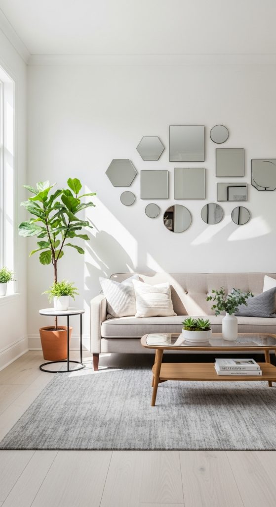 Mirrors are versatile décor elements that can transform a blank wall while making the space appear larger and brighter. For a living room wall, consider using a large mirror or a collection of smaller mirrors arranged creatively. Preparation involves choosing the mirror style, measuring the wall space, and ensuring proper mounting hardware is available. Materials typically include the mirror, wall anchors, screws, and a level. Mirrors reflect natural and artificial light, creating an airy and open feel in the room. You can opt for framed mirrors for a traditional look or frameless designs for modern spaces. Arranging multiple mirrors in geometric patterns adds an artistic touch and serves as a conversation piece. Beyond aesthetics, mirrors also help balance the room by visually expanding small spaces. When placed opposite windows, they can maximize light and improve the overall atmosphere of the living area. Mirrors are practical, decorative, and timeless solutions for blank walls.