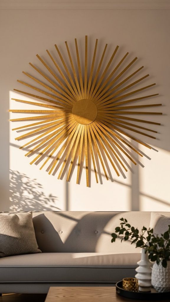 A sunburst wall art piece can instantly bring warmth and visual balance to any space, especially above a sofa, bed, or console table. To prepare for this project, gather cardboard, a circular base cut from the cardboard, scissors, glue, and optional metallic paint. Start by cutting long strips or triangular rays from the cardboard. The rays can be symmetrical for a clean look or varying lengths for a more organic feel. Secure the rays around the circular base using hot glue or strong craft glue, ensuring the arrangement stays evenly spaced. Once the primary layer is complete, add a second or third layer of rays on top to enhance dimension and depth. Painting the finished piece in gold, bronze, or white can create a high end appearance reminiscent of classic sunburst mirrors found in luxury decor stores. Although the design looks intricate, the construction is simple since cardboard is easy to shape and glue. This project is ideal for anyone seeking a focal point that brings brightness and movement to a room. Furthermore, the lightweight nature of cardboard makes installation stress free and safe. This DIY sunburst decor demonstrates how basic recyclable materials can become stunning artistic features with the right creative approach.