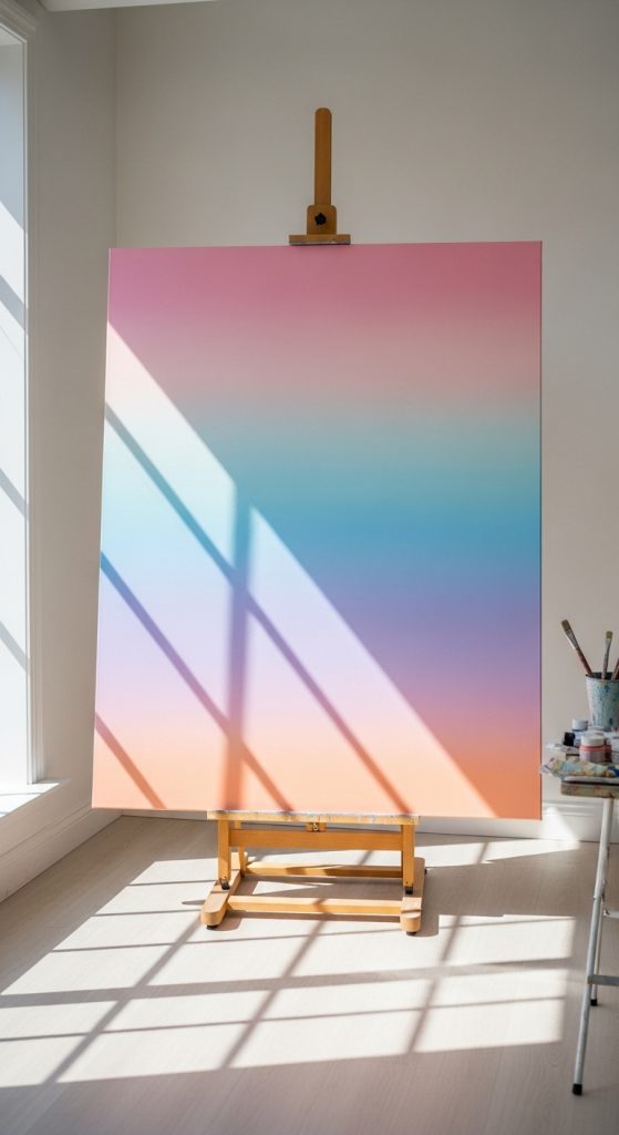 Creating pastel ombre canvas art is a relaxing way to incorporate soft gradients into your home decor. Begin by gathering a canvas, pastel acrylic paints, large flat brushes, a spray bottle filled with water, and a mixing palette. Prepare your workspace with a drop cloth and ensure good ventilation. Start by choosing two or three complementary pastel shades and placing them on your palette. Dampen your brush slightly with water to help the paint blend smoothly. Apply the first color at the top of the canvas using broad horizontal strokes. While the paint is still wet, apply the second shade just below the first and gently blend the two together using overlapping brush movements. Continue with additional colors if you want a multi tone ombre effect. The spray bottle can help soften harsh transitions by misting a fine layer of water over the surface, allowing smoother blending. Let the artwork dry completely before hanging it. This project works well as a large statement piece above a bed, sofa, or desk. The beauty of pastel ombre art is its simplicity and calming appearance. It suits minimalist, boho, and modern interior styles and does not require advanced painting skills to achieve visually appealing results.