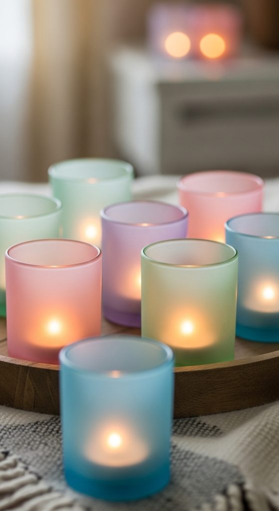 Pastel candle holders bring soft lighting and subtle color into your living spaces. To create them, gather small glass containers, pastel glass paints or frosted spray paint, brushes, painter tape for patterns, and a sealant suitable for glass. Clean the glass thoroughly to remove fingerprints and dust. Once dry, decide whether you prefer a fully painted surface or a design using negative space. For patterns, apply painter tape in stripes, triangles, or abstract shapes. Paint the open areas with pastel colors using light, even strokes. Glass paint often requires multiple thin layers to achieve smooth coverage. Allow each coat to dry before applying the next. If you prefer a frosted look, use pastel tinted spray paints for a soft diffused effect. After the design is complete and fully dry, seal the candle holder to ensure durability. Place a tea light or LED candle inside. When illuminated, pastel candle holders create a calm and cozy atmosphere ideal for evening relaxation, special occasions, or bedroom decor. This craft is economical and highly adaptable to different shapes and sizes of glass containers, making it easy to create coordinated sets.