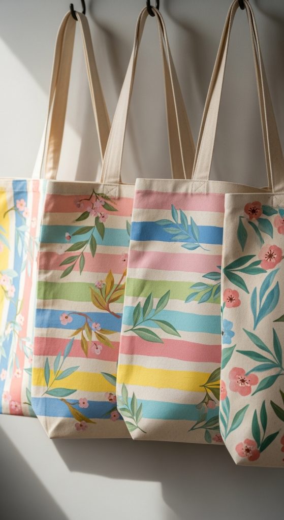 Pastel painted tote bags are both stylish and practical. You will need plain canvas tote bags, pastel fabric paints, stencils or masking tape, brushes or sponges, and a piece of cardboard to place inside the bag while painting. Insert the cardboard into the bag to prevent paint from bleeding through. Choose a design, which could include simple stripes, floral accents, geometric shapes, or abstract art. If you prefer sharp edges and clean lines, apply masking tape to define your pattern. For softer designs, use a sponge or soft brush for gentle shading. Apply paint in thin layers to prevent cracking once the fabric flexes. Allow each layer to dry before adding another. After completing the design, let the paint cure fully, usually for twenty four hours. Some fabric paints may require heat setting with an iron, so check the product instructions. The pastel color palette gives the tote a gentle and refined appearance suitable for everyday use. These bags work well for school, shopping, or travel and make excellent personalized gifts. The project is beginner friendly, and the results are durable with proper care.