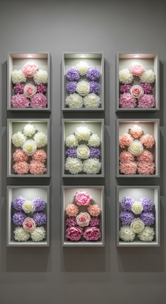 Pastel flower shadow boxes are elegant decorative pieces that add depth and artistry to any room. You will need a shadow box frame, pastel artificial flowers, cardstock for backing, scissors, a glue gun, and optional decorative elements like pearls or ribbons. Start by removing the backing of the shadow box and covering it with pastel cardstock. This ensures a consistent color theme and a clean background. Trim the artificial flowers so the stems fit comfortably inside the box. Arrange the flowers on the cardstock before gluing them to make sure the layout feels balanced. You may choose a single type of flower or mix roses, daisies, and peonies in complementary pastel tones. After securing the arrangement with hot glue, allow it to dry completely. Add small accents if desired, but avoid overcrowding the composition. Place the glass front back onto the shadow box and ensure it closes securely. These shadow boxes work beautifully as wall art or tabletop decor. They also make meaningful handcrafted gifts for birthdays, weddings, and special events. Their pastel palette creates a soothing and romantic atmosphere while showcasing the dimensional beauty of preserved floral arrangements.
