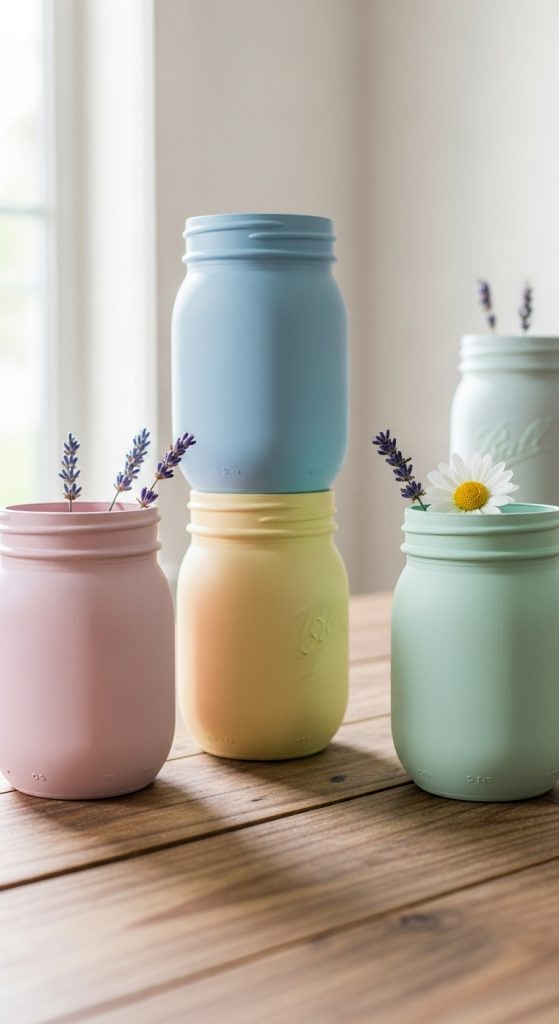 Pastel painted mason jars are a simple yet charming project that fits into any room decor. To begin, prepare your workspace with a clean table, protective covering, and good lighting. The materials you will need include mason jars, pastel acrylic paints, matte or satin finish sealant, soft brushes, painter tape if you plan to create patterns, and mild soap for cleaning the jars. Start by washing the jar thoroughly and letting it dry completely because any moisture or residue will prevent the paint from adhering properly. Apply the first coat of pastel paint using even strokes. Allow it to dry before adding a second coat to achieve an opaque and smooth surface. If you want to add stripes or geometric shapes, apply painter tape after the first layer dries and paint between the taped sections. Once all layers dry fully, seal the jar using a spray or brush on sealant to protect the finish. These jars can be used as vases, pencil holders, bathroom organizers, or simple decorative pieces. Their soft colors help brighten any space without overwhelming the design. Beginners will find this craft approachable, and experienced crafters can elevate the project by adding texture, gradients, or stenciled illustrations.