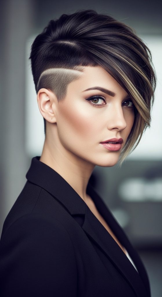 The undercut pixie haircut is a bold and modern version of the classic pixie. In this style, the sides or the back of the head are shaved or cut very short, while the top section remains longer. This contrast creates a dramatic and edgy appearance.