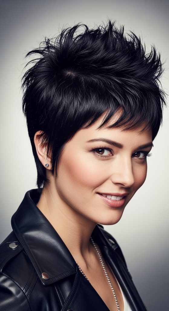 The spiky pixie haircut is one of the most playful and rebellious short hairstyles. It features short layers styled upward to create spikes that give the hair a bold and energetic appearance.