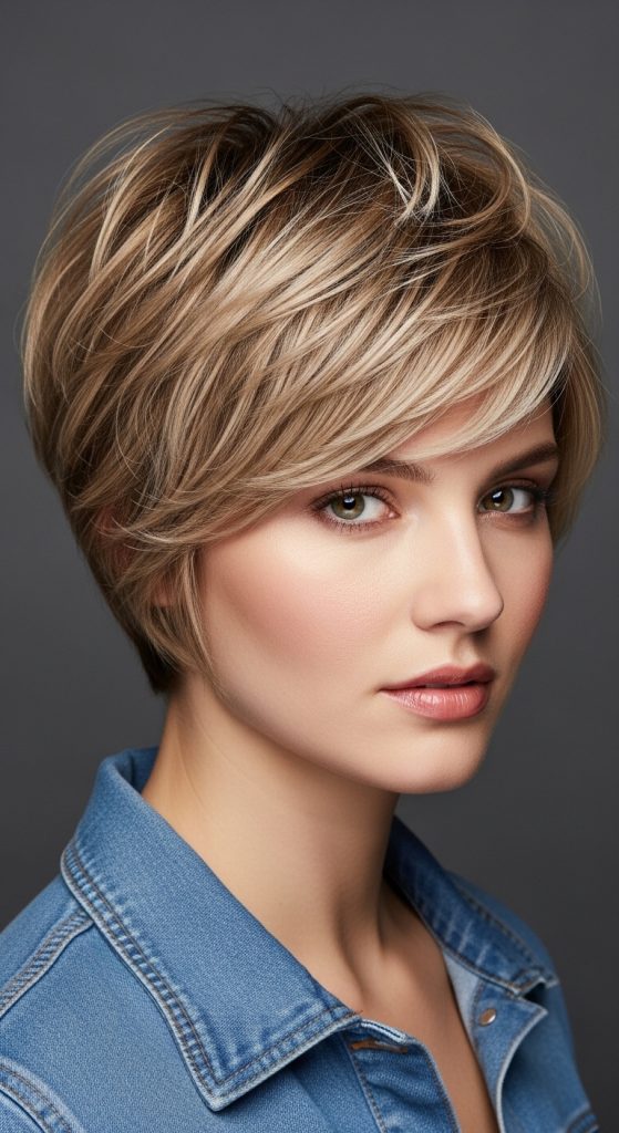 A textured edgy pixie cut is one of the most popular short hairstyles because it creates movement and dimension. This style uses multiple short layers that are cut at different angles to produce a slightly messy but stylish look. The textured layers make the hair appear fuller and more dynamic, which is ideal for people with fine or thin hair.