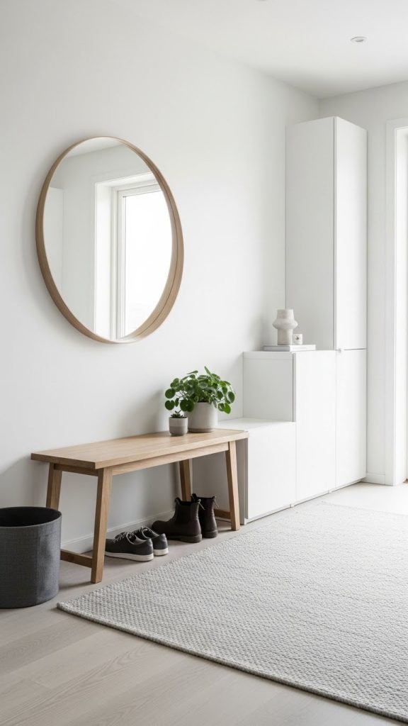 A Scandinavian entryway is known for its simplicity, functionality, and use of natural materials. To create this style, prepare materials such as light wood furniture, neutral textiles, slim storage units, and minimal decorative pieces. Begin with a soft and bright color palette including white, light gray, and pale wood tones. Choose furniture pieces that offer both style and practicality, such as a minimalist bench with built in storage or a slim shoe cabinet. Scandinavian decor values natural light and uncluttered spaces, so avoid heavy items that may block pathways or overwhelm the area. Add a simple rug with soft textures and hang a round mirror with a wooden frame to enhance brightness. A few functional accessories like a coat rack or a small tray for keys can complete the space without adding clutter. Scandinavian decor focuses on comfort and efficiency, making it ideal for small entryways. Its clean and refreshing aesthetic creates an inviting atmosphere that is both modern and timeless.