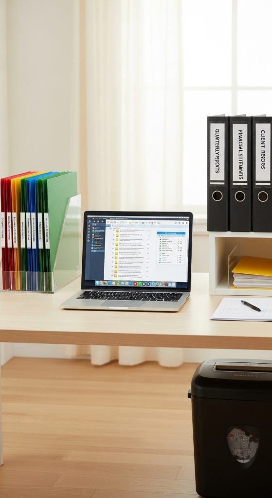 A functional home office fosters productivity and focus. Preparation materials include filing cabinets, desk organizers, cord management tools, and a digital storage plan. Begin by clearing your workspace of unnecessary items and categorizing papers into important, reference, or discard piles. Digitize essential documents using a scanner or mobile app to reduce paper clutter. Arrange supplies such as pens, notebooks, and cables in labeled drawers or containers. Establish a filing system for invoices, receipts, and tax documents. Organize your computer desktop with clearly labeled folders to mirror your physical setup. Incorporate a weekly review to declutter both physical and digital spaces. Proper lighting and ergonomic furniture further enhance your workflow. With a structured office organization plan, you can maintain clarity and efficiency in your professional environment.