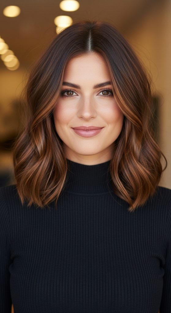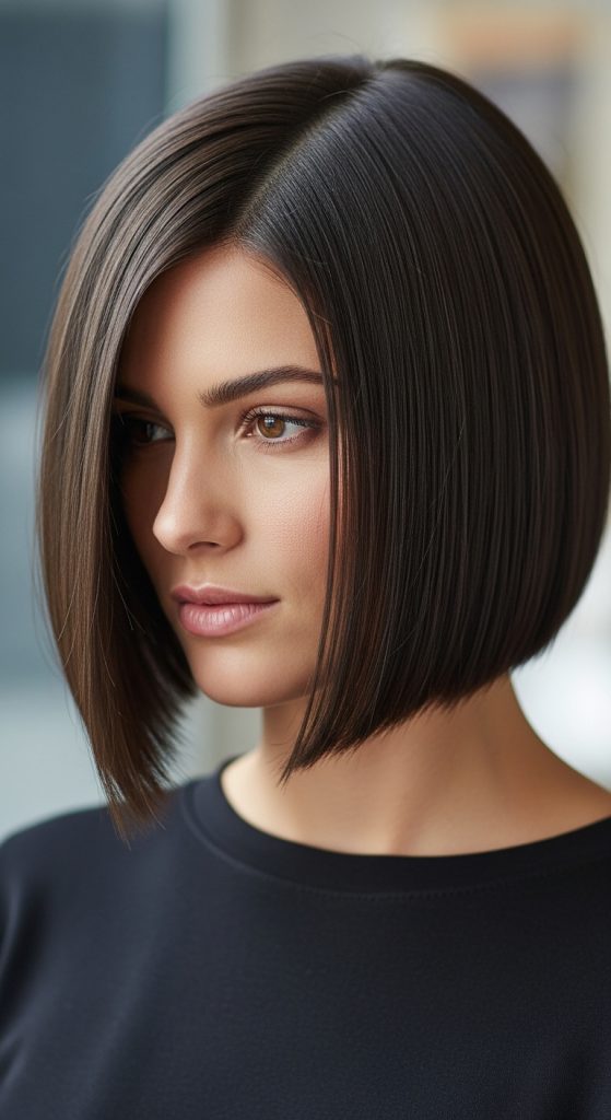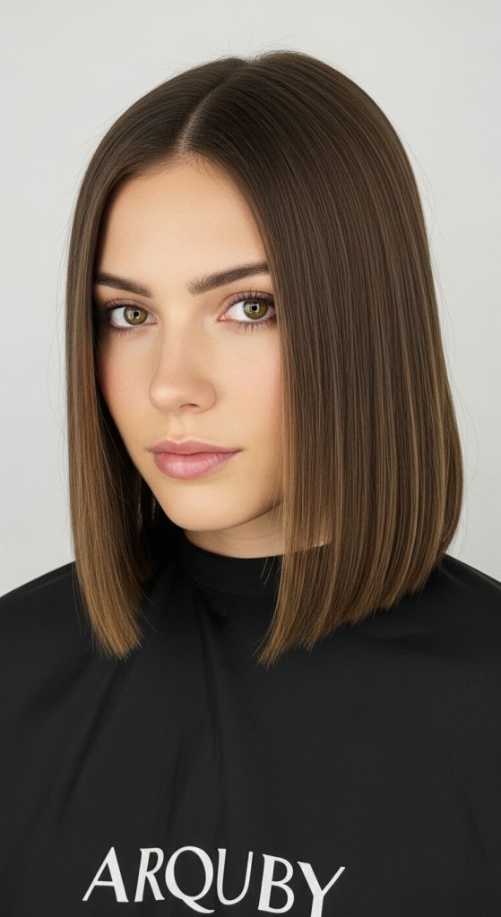 The shoulder length lob, also known as a long bob, is a modern and practical choice. This cut sits around the collarbone and works beautifully with straight hair because it frames the face without requiring much styling.