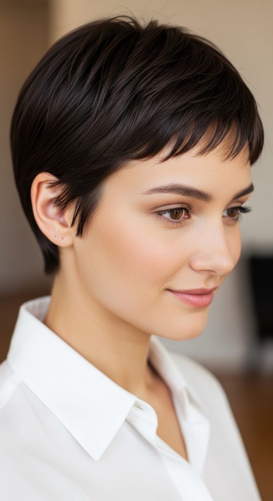 Although the pixie requires more frequent trims, usually every four to six weeks, daily styling is minimal. Wash, towel dry, apply product, and you are ready. This haircut is perfect for those who want a fresh, confident look without spending much time on hair.