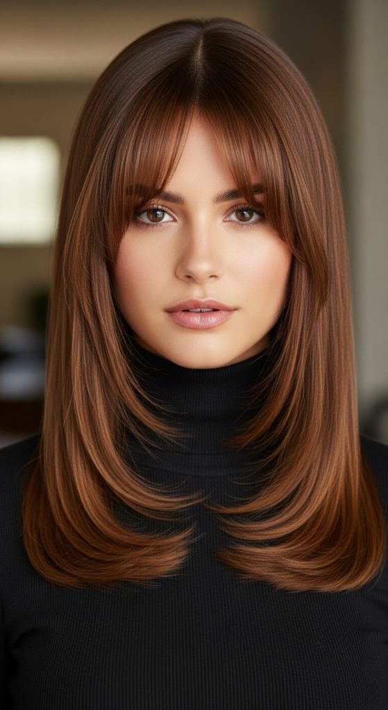 A long layered cut is perfect for those who want to keep their length but reduce heaviness. Straight hair can sometimes look flat when it is all one length. Adding long, subtle layers gives movement without making styling complicated.
