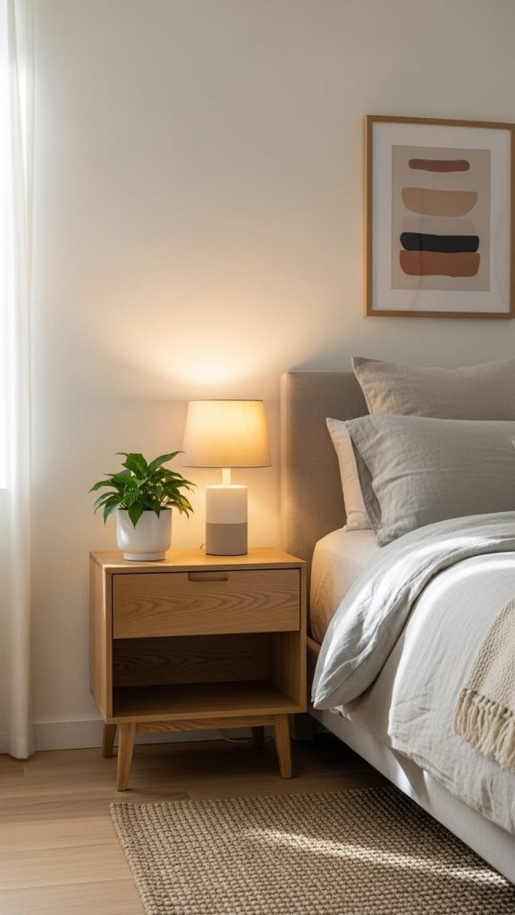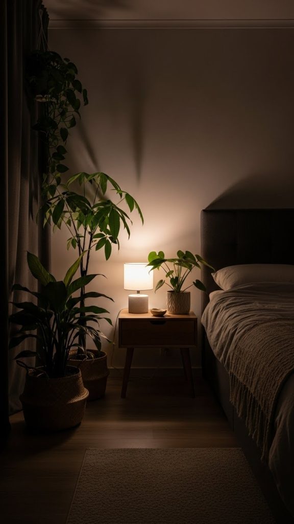 Position the plant slightly to one side to maintain balance. Keep leaves trimmed so they do not touch your face or bedding. Water once the soil feels dry to the touch. This small addition creates a calm, natural feeling and makes your bedside area look styled and intentional.