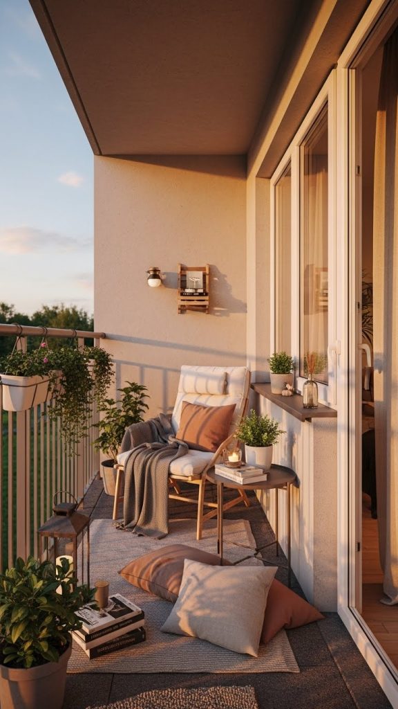 A balcony reading nook combines fresh air with reading pleasure. It is ideal for people who enjoy outdoor spaces.
