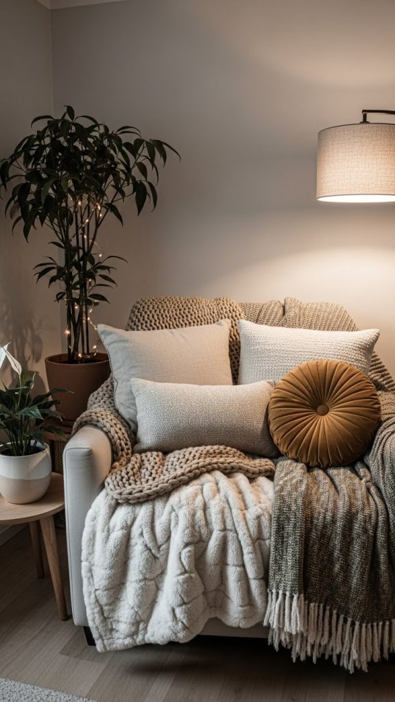 This reading nook is ideal for long reading sessions as it allows multiple seating positions. It is also easy to move or redesign. This setup works especially well in small rooms or rented homes where permanent furniture is not preferred. The floor seating style creates a relaxed and informal reading environment.