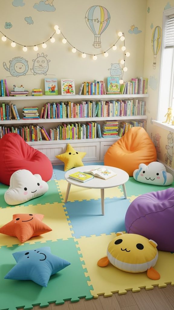 A kids reading nook encourages children to develop a love for reading from an early age. It should be colorful, safe, and fun.