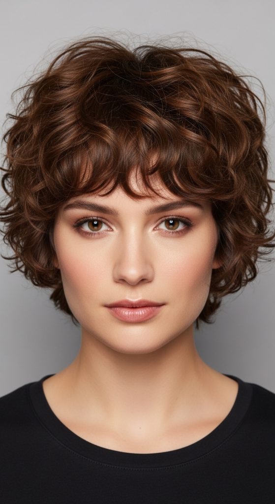 A curly shaggy pixie cut is ideal for people with natural curls or waves. The layered structure enhances the natural curl pattern while preventing the hair from becoming too heavy.