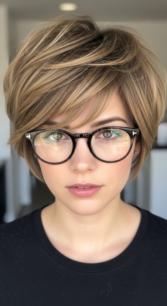This hairstyle suits many face shapes, especially round and square faces, because the side bangs create the illusion of length and softness. With proper styling products and regular trims, the layered shaggy pixie with side bangs remains fresh and stylish.