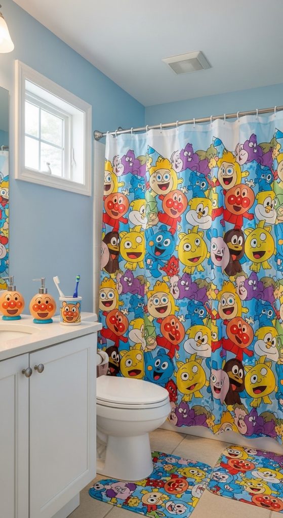 Cartoon-themed curtains can make the bathroom feel like a fun space for children and may help encourage better bathing habits.
