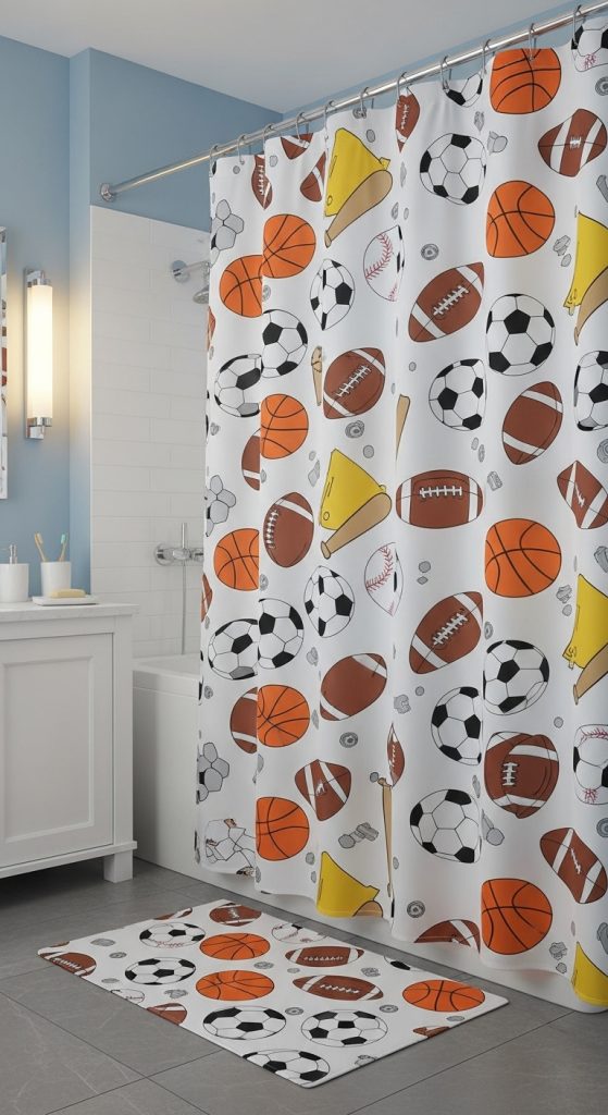1. Sports-Themed Shower Curtain for Active Boys