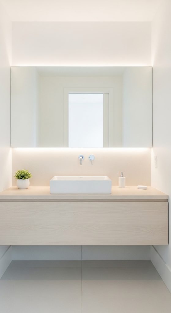 Large mirrors also improve daily bathroom activities such as grooming, shaving, and makeup application. When combined with proper lighting, they make the space more functional and comfortable.