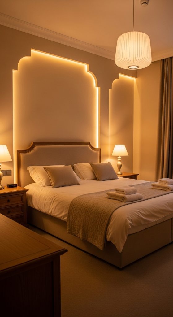 Lighting plays a major role in creating warmth in a bedroom, and using layered lighting is essential. Begin by assessing the current lighting setup. Replace bright white bulbs with warm white bulbs in the 2700 to 3000 Kelvin range. Warm lighting immediately softens the atmosphere and reduces harsh shadows. Layered lighting includes ambient lighting, task lighting, and accent lighting. Ambient lighting provides general illumination, task lighting helps with reading or work, and accent lights highlight decor or textures. Consider using bedside lamps, pendant lights, warm LED strips, or wall sconces. Preparation may include rearranging furniture to ensure light spreads evenly. Fabric lampshades also contribute to a warm glow. Additionally, avoid overhead lights as the only source, as they can feel sterile. Instead, combine multiple low lights for a calm, hotel like comfort. With the right approach, warm lighting transforms your bedroom into a soothing retreat ideal for rest and unwinding.