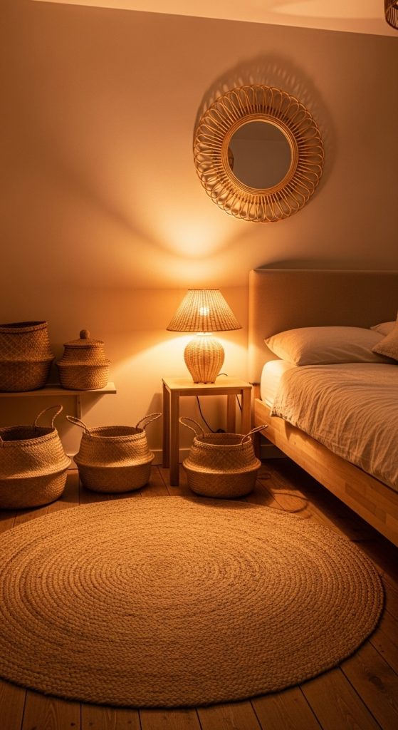 Natural fiber decor elements like jute, rattan, seagrass, wicker, and bamboo add organic warmth and texture to your bedroom. These elements create a grounded and earthy feel that complements warm tones perfectly. When preparing to incorporate natural fiber decor, consider items like jute rugs, woven baskets, rattan mirrors, wicker lamps, and bamboo trays. Natural fiber pieces are durable, lightweight, and environmentally friendly. They pair wonderfully with wooden furniture and warm colored walls. To maintain balance, avoid overusing natural fiber decor as too much can make the space look rustic. Instead, incorporate just a few key pieces. Preparation includes checking for quality craftsmanship to ensure long lasting decor. Natural fiber accessories bring depth, contrast, and tactile comfort to your warm tone bedroom. They help create a serene and nature inspired environment that promotes calmness and relaxation.